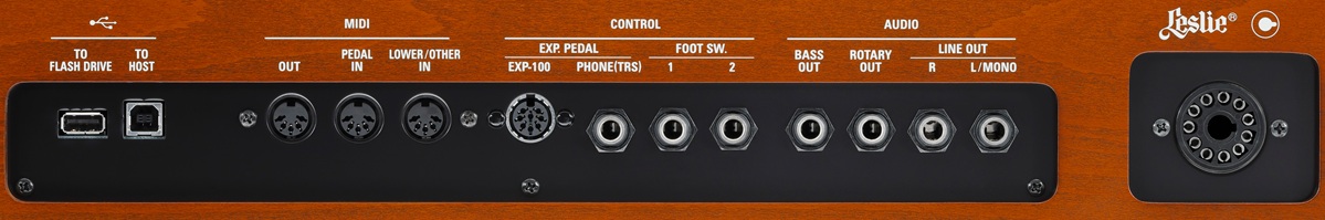 HAMMOND’S exclusive H-BUS system and connectors make connecting the 25-note pedalboard (and optional CU-1 “Half-Moon” Leslie switch) easy, while keeping the organ’s appearance neat and tidy.